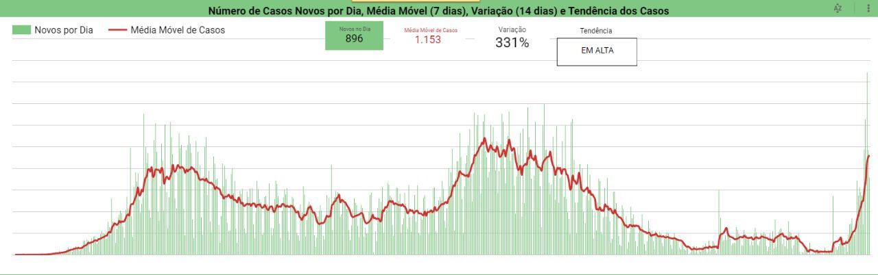 Dos 896 casos confirmados, 546 são mulheres e 350 são homens com idades que variam de 02 a 104 anos.